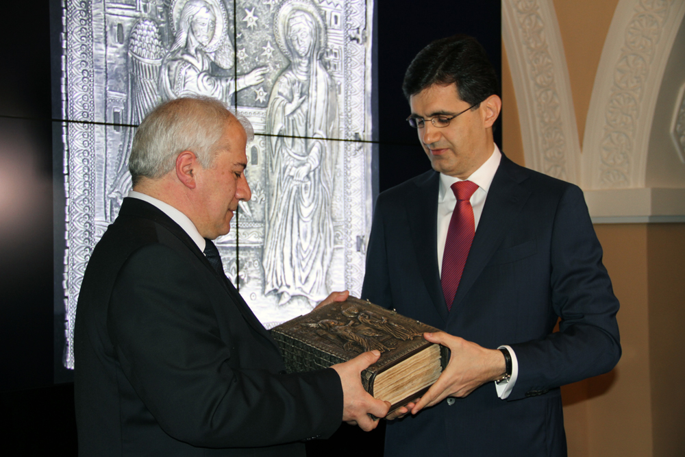 Ոսկան Երևանցու` բացառիկ արժեք ներկայացնող Աստվածաշունչը տպագրվել է 1666 թվականին` Ամստերդամում: Գրատպության այս շքեղ օրինակը տարիներ շարունակ եղել է արտասահմանյան մի մասնավոր հավաքածուի մասը: «ՎիվաՍել-ՄՏՍ»-ի գլխավոր տնօրեն Ռալֆ Յիրիկյանի նվիրատվության շնորհիվ այն այժմ մայր ձեռագրատանն է և առանձնահատուկ փայլ կհաղորդի Մատենադարանի ցուցադրությանը: Պատմամշակութային մեծ արժեք ունեցող այս հատորը բացառիկ հետաքրքրություն է ներկայացնում. Ոսկան Երևանցին այն նվիրել է հայ տպագրության ակունքներում կանգնած Հակոբ Ջուղայեցի կաթողիկոսին: Աստվածաշունչ մատյանի այս օրինակը 1668 թ.-ից ունի արծաթե ընտիր կազմ, որը հայկական արվեստի և պատկերագրության եզակի նմուշ է: Հայկական արծաթագործության նշանավոր կենտրոններից մեկը հանդիսացող Էրզրումի դպրոցի վարպետ ոսկերիչներից մեկի ձեռքով պատրաստված կազմը արվեստի հրաշալի գործ է՝ փորագրության և դաջվածքի հմուտ մշակմամբ: Հայտնի է, որ կազմը պատրաստող վարպետը տիրապետել է և´ ոսկերչական նրբագույն արվեստին, և´ մանրանկարչությանը, և, որ ավելի կարևոր է` աստվածաբանական իմացություն է ունեցել, ինչի շնորհիվ կատարելության է հասցրել այս սքանչելի ստեղծագործությունը: Կազմի երեսին պատկերված է Ավետման տեսարանը, իսկ դարձերեսին` Համբարձման: Գրքի բացվող հատվածում պատկերված են չորս ավետարանիչները` իրենց խորհրդանշաններով: «Հավանաբար, չափազանցած չեմ լինի, եթե ասեմ, որ Մատենադարանը մեզ համար ունի նույն խորհուրդը, ինչ բիբլիական Արարատը: Սա մի սրբավայր է, որը բնութագրում է մեր էությունը: Գրի և գրականության հանդեպ հայի սերն անսահման է: Ֆիզիկական բնաջնջման վտանգը նույնիսկ, պատվի և գոյության համար մարտնչող ժողովրդին հետ չի պահել կյանքի գնով գիրքը փրկելու վճռականությունից: Հայն իր ցավն ամփոփել է երգի, ստեղծագործության և աղոթքի մեջ`ամուր պահպանելով մշակույթը: Ուրախ եմ, որ իմ համեստ ներդրմամբ կարողացա օգտակար լինել Մատենադարանին»,- ըստ ընկերության տարածած հաղորդագրության՝ ասել է Յիրիկյանը: «ՎիվաՍել-ՄՏՍ»-ի գլխավոր տնօրենը ևս մեկ անակնկալ է մատուցել՝ իր անձնական գրադարանից Աստվածաշնչի ևս երկու օրինակ հանձնելով Մատենադարանին: Դրանցից մեկը տպագրվել է 1854 թ., իսկ մյուսի տպագրության տարեթիվը կպարզեն մասնագետները՝ համապատասխան ուսումնասիրությունից հետո: Աղբյուրը: http://www.armenianow.com/node/45985 | |